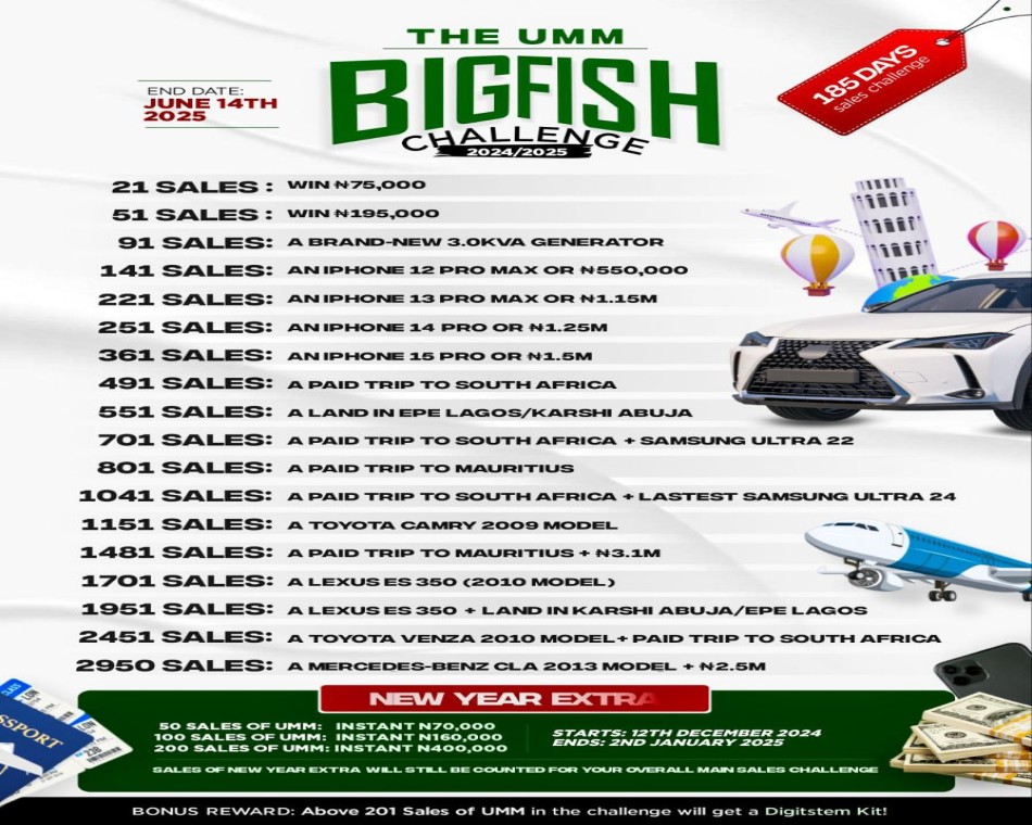 - 1,041 Sales of UMM: Win a Fully Paid Trip to South Africa + Latest Samsung Ultra 24